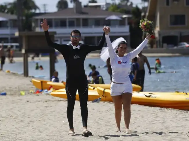 Довольно необычное развлечение для своей свадьбы выбрала эта влюбленная пара из Калифорнии.