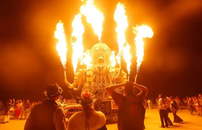 Ежегодное восьмидневное событие, происходящее в США, штате Невада, в пустыне Блэк-Рок (англ. Black Rock Desert). Событие начинается в последний понедельник августа, в ноль часов одну минуту. Последний день приходится на День Труда, официальный праздник отмечаемый в США в первый понедельник сентября, выходной день для большинства организаций. Кульминация происходит в субботу после заката, когда сжигают огромную деревянную статую человека.