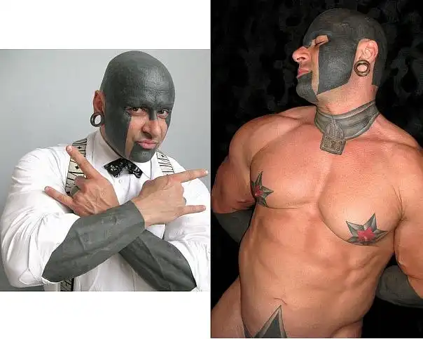 Бывают сочетают Blackwork tattoo и скарификацию (шрамирование), смотриться еще жестче!