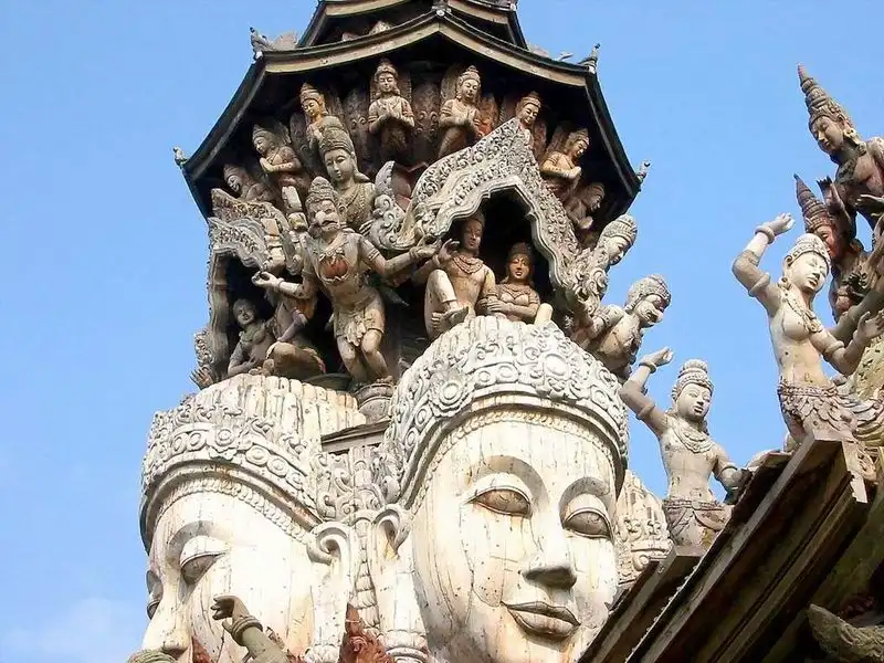 Храм Истины - это храм в Паттайе, Таиланд, который представляет собой здание из дерева с огромным количеством скульптур на основе буддистской и индуистской мифологии. Высота строения - около 105 метров. Храм выполнен в архитектурном стиле «визионерское искусство», в котором узоры основываются на традиционных религиозных темах. Весь этот строительный проект начался как идея тайского бизнесмена Лека Вирияфанта в 1981 году. Храм еще не закончен, окончание его строительства назначено на 2025 год.