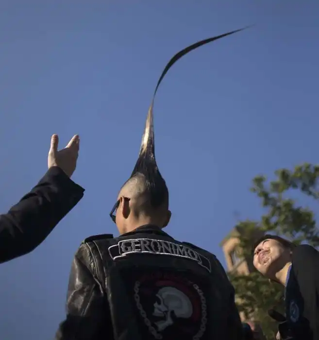 Дело в том, что у него самый высокий ирокезы в мире - 1,3 метра.