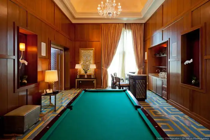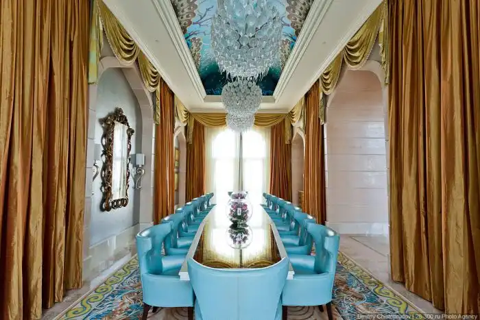 Высота потолков метров шесть. Стоит он 50 тысяч долларов за ночь.