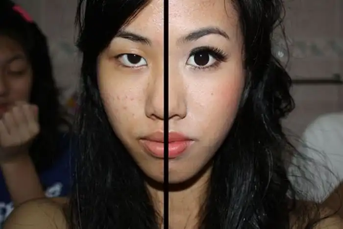Обычно мы смотрим на фотографии до и фотографии после нанесения макияжа.