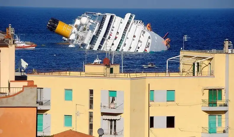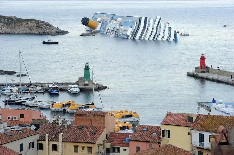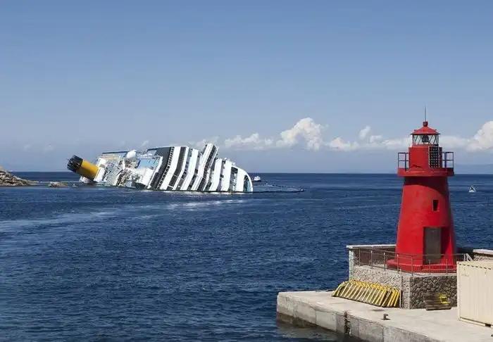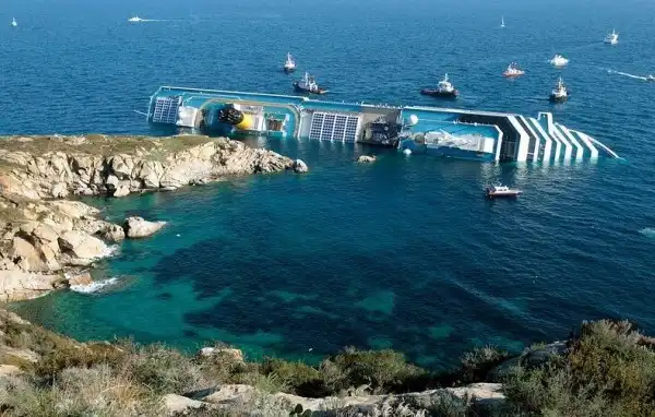 Круизный лайнер Коста Конкордия сел на мель 13 января 2012 года после того, как судно ударилось о скалу в Тирренском море, приблизительно в 100 километрах к северо-западу от Рима. В результате этого удара образовалась длинная пробоина в 50 метров на корпусе Costa Concordia. Практически мгновенно было затоплено машинное отделение и был утрачен контроль над двигателями и электронными системами. С затопленными отсеками судно дрейфовало к острову Джильо, сев на мель в 500 метрах от деревни Джильо Порто. Именно в этом месте судно до сих пор и лежит на боку.