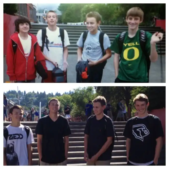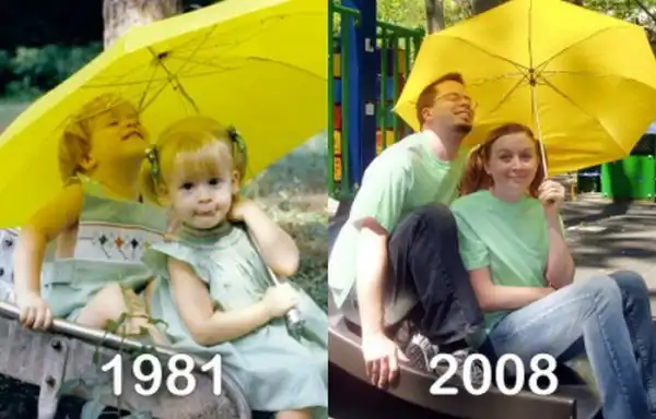 Классные постановочные сравнительные снимки людей в стиле "В детстве и сейчас".