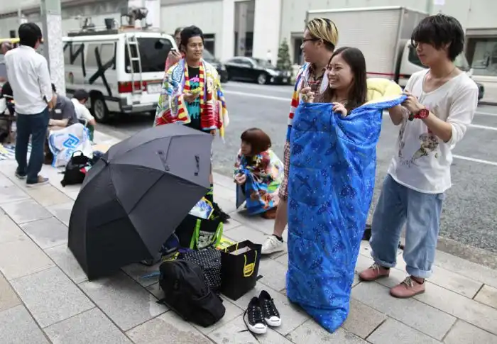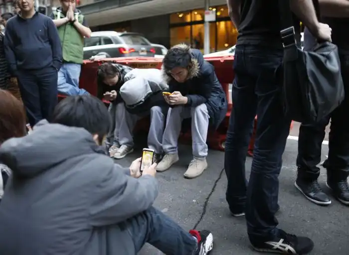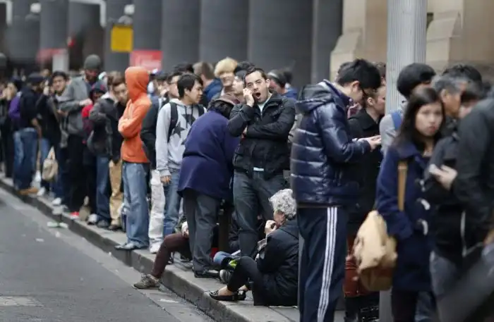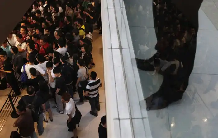 На фото далее вы увидите людей, которые ждут открытия магазина Apple
