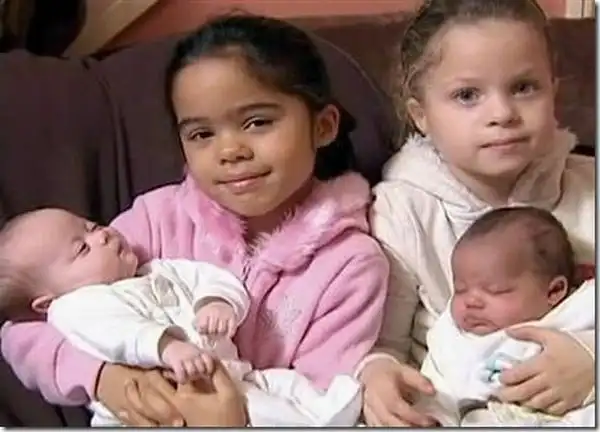 Пара, у которой родились “Черно-белые” близнецы … дважды Британская пара смешанной расы бросила вызов случайностям, дважды родив близнецов с разным цветом кожи. Явление настолько необычно, что нет никаких статистических данных, чтобы иллюстрировать вероятность.