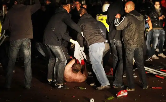 при которых 36 человек были серьезно ранены, а 25 зачинщика потасовки были арестованы властями.