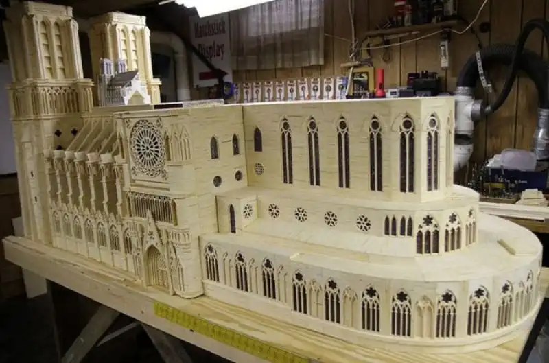 Позже заинтересовался возведением скульптур из спичек, произошло это в 1977 году.