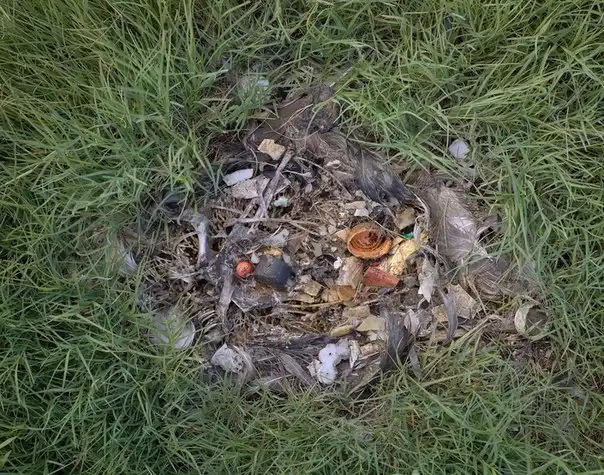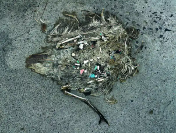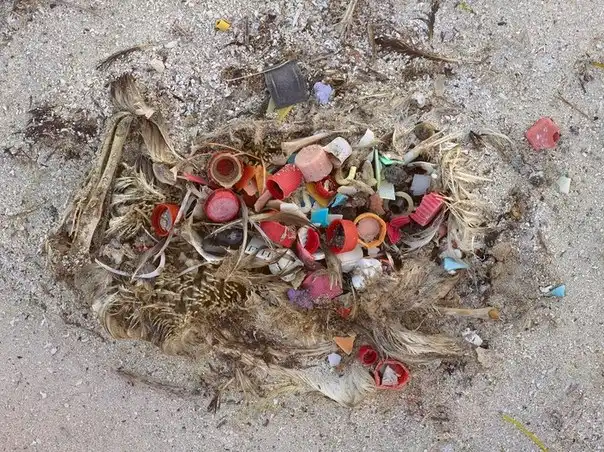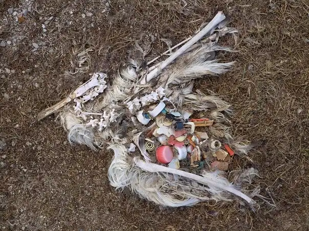 Фотограф Крис Джордан (Chris Jordan) отправился на атолл Мидуэй, в место обитания самой большой в мире колонии альбатросов и обнаружил останки птенцов, которых родители пытались кормить выловленным в прибрежных водах пластиком.