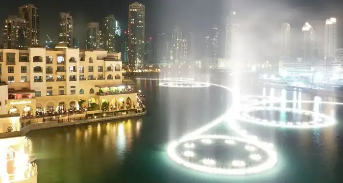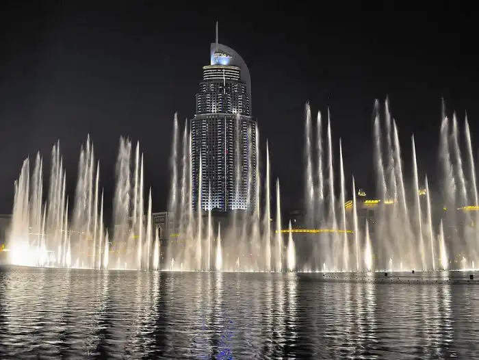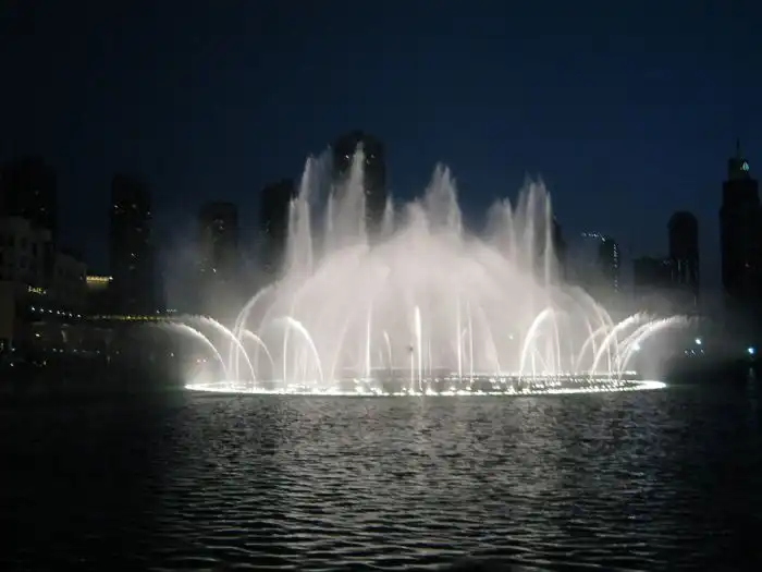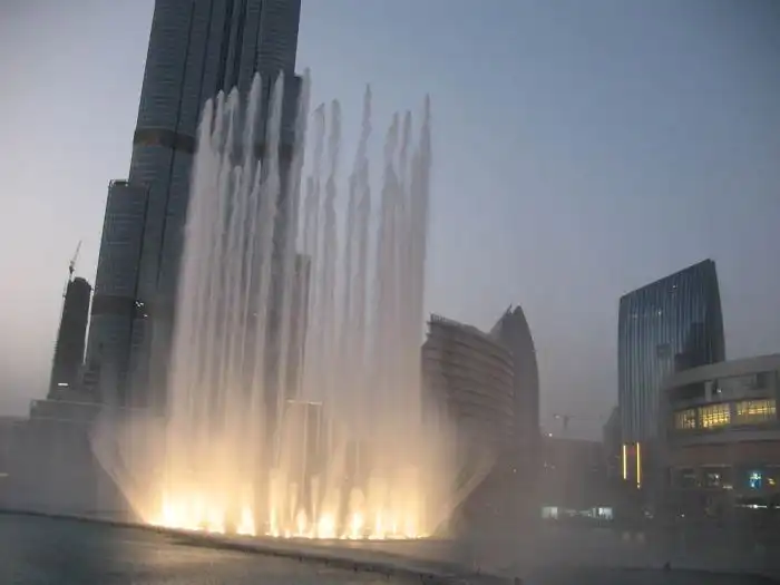 Этот удивительный фонтан был построен на искуственном озере под названием Бурдж-Халифа, который находится в центре Дубая.