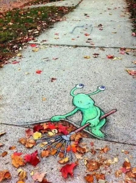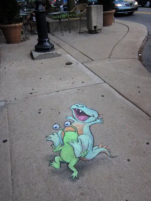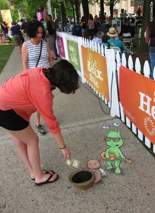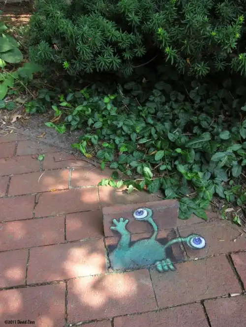Улицы небольшого городка Энн-Арбор (штат Мичиган, США) украшены изображениями забавного и необычного зеленого существа по имени Слагго (Sluggo). Так художнику-самоучке и просто творческому человеку Дэвиду Зинну (David Zinn) захотелось украсить улицы своего города, чем он и занимается с 2008 года на радость маленьким и взрослым жителям.