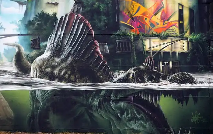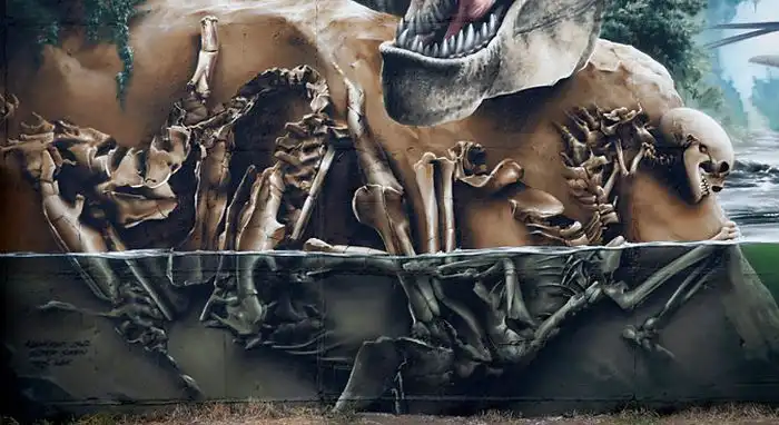 Сногшибательное граффити в стиле "Парк Юрского периода"