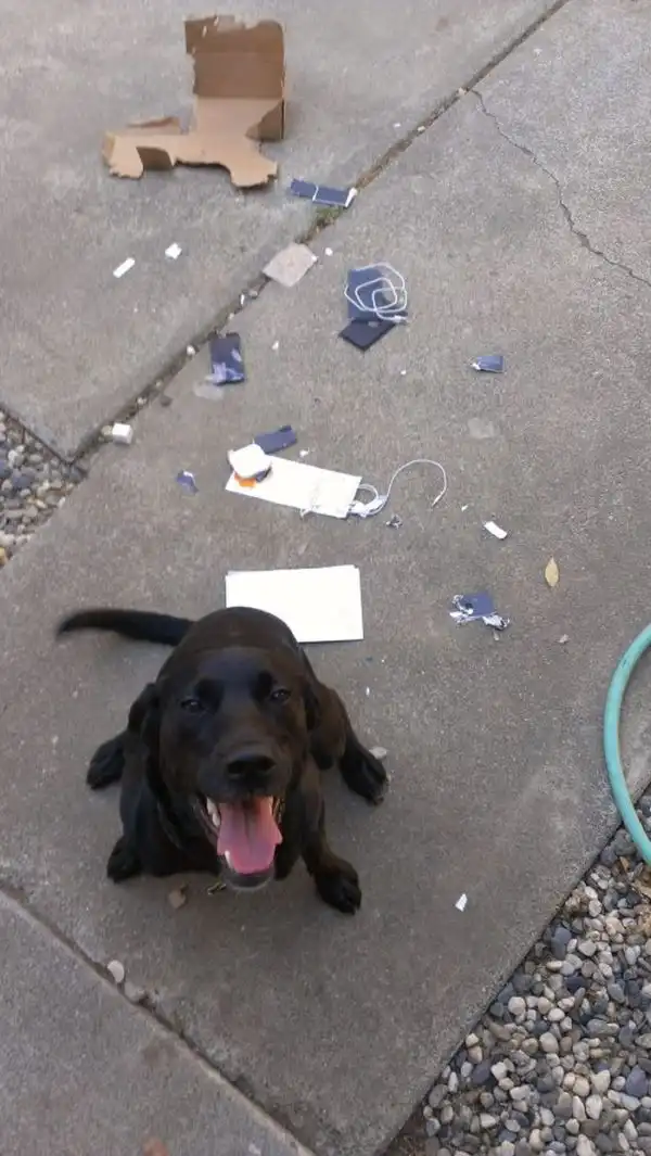 Коробку с телефоном сначала обнаружила его собака ;)