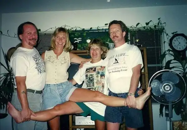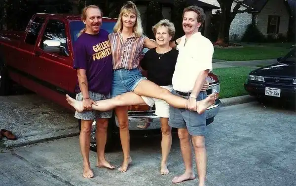 В далеком 1988 году двое братьев и двое сестер решили сделать оригинальную фотографию, на которой женская половина семьи поднимает ноги.