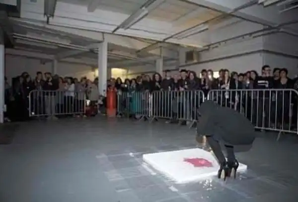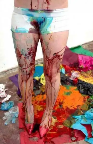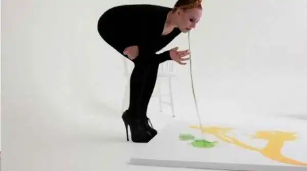 Знакомьтесь, Милли Браун. Поговаривают, что она не только художница, но и певица. Процесс творения происходит так: белая комната, двое барышень поют классическую арию, а Милли литрами хлещет краску, а потом блюет на полотно. Перфомансов уже было немало, говорят, что Милли даже успела наблевать на Леди Гагу. Кстати, одна картина выставлена на продажу - всего 2 400 долларов США. Так что, приобщаемся к искусству.