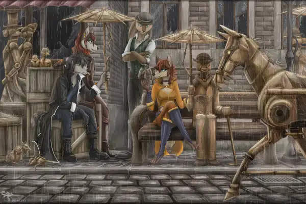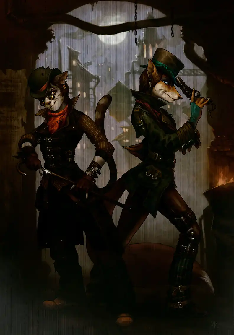 Фурри, от английского furry (пушистый), это антропоморфные животные. Но, несмотря на, казалось бы, очевидное, не только лохматые персонажи попадают в категорию "пушистиков". Это могут быть, например, антро-змеи, антро-ящеры, антро-птицы, антро-драконы и все в таком виде. Это само по себе очень милое и красивое явление. А в купе со стимпанком порождается очень интересный симбиоз этих двух стихий.