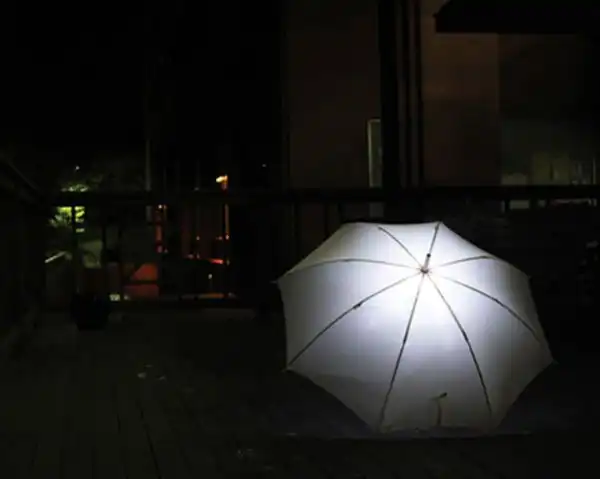 Зонт дизайнера Sang-Kyun Park использует энергию падающих капель дождя, превращая ее в электричество, с помощью которого подсвечивается поверхность зонта. Чем сильнее идет дождь, тем ярче светится зонт.