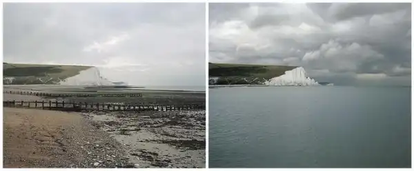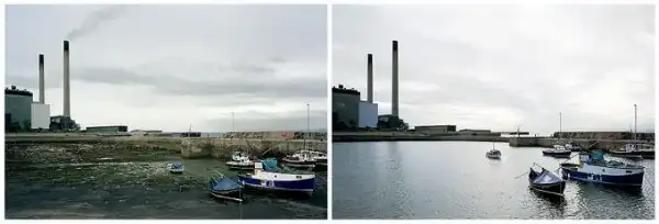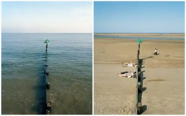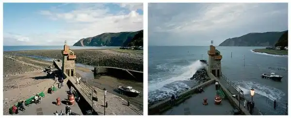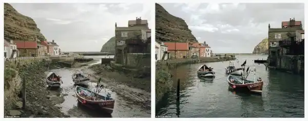 Снимки отливов и приливов - не знаю, можно ли назвать их "до и после". Очень круто посмотреть, насколько сильно прибывает или убывает вода. Снимки мелковаты, но впечатление передают в полной мере.