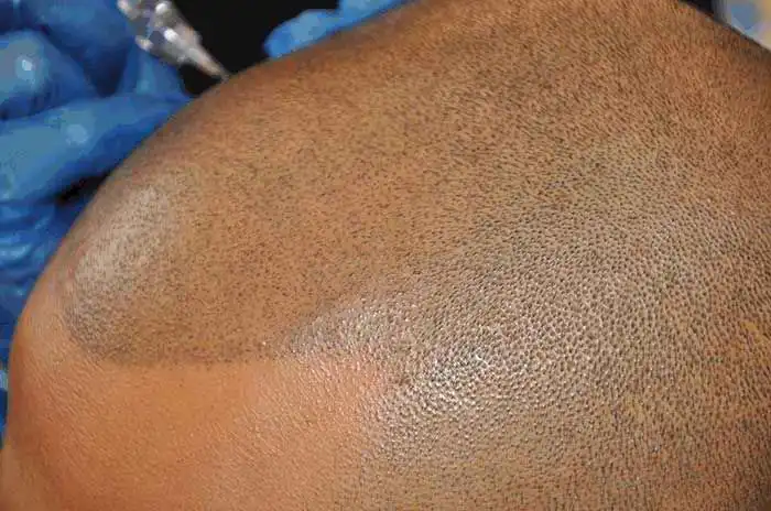 специальное тату, которое создает иллюзию присутствия волос на голове :)