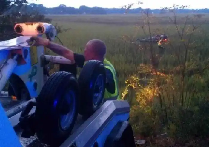 при которой его автомобиль вылетел в кювет, несколько раз перевернулся и начал погружаться в болото.