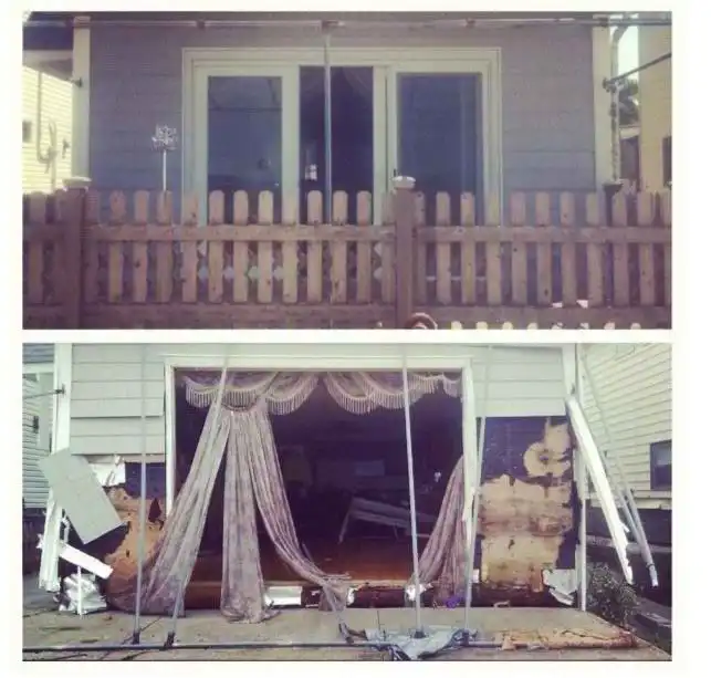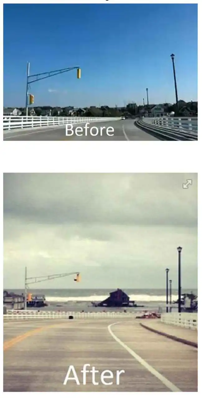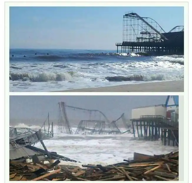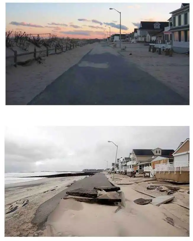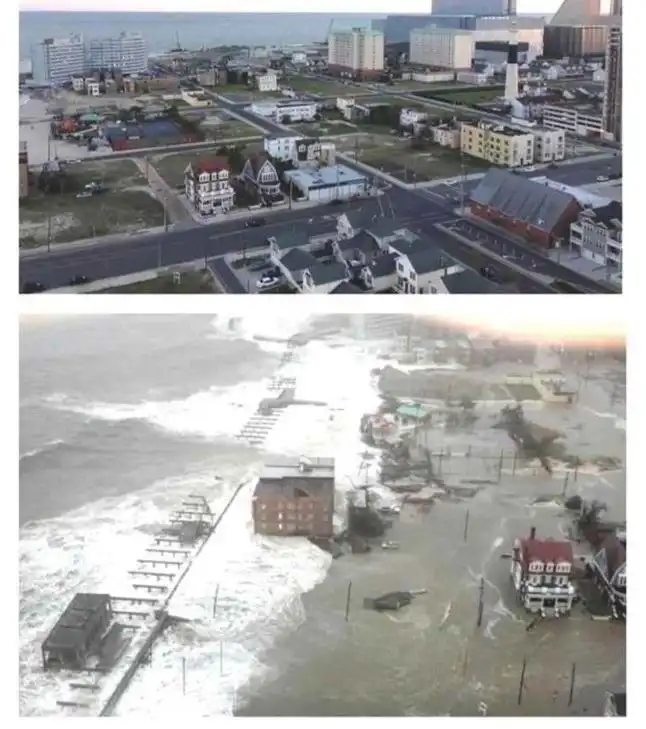 на которых вы увидите города и побережье США в формате: "до и после" урагана "Сэнди".