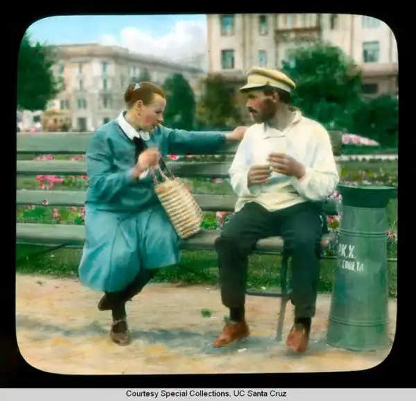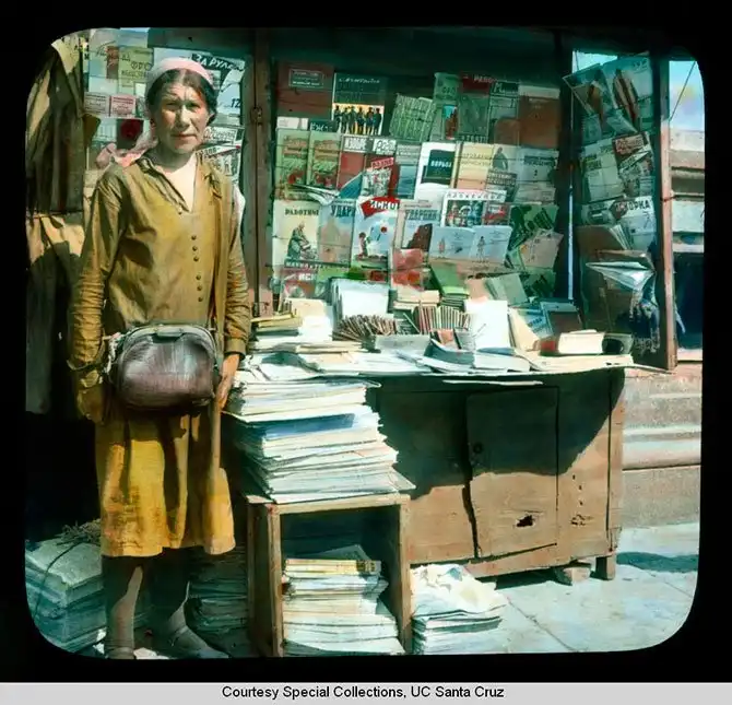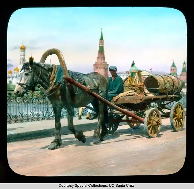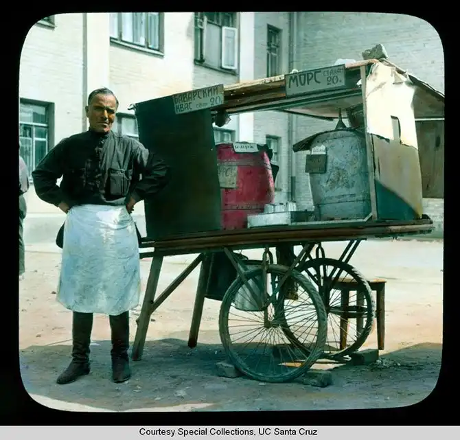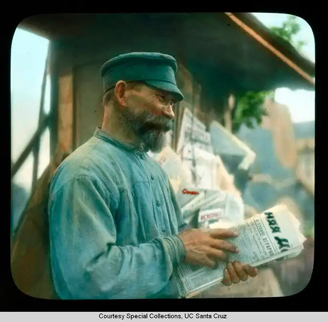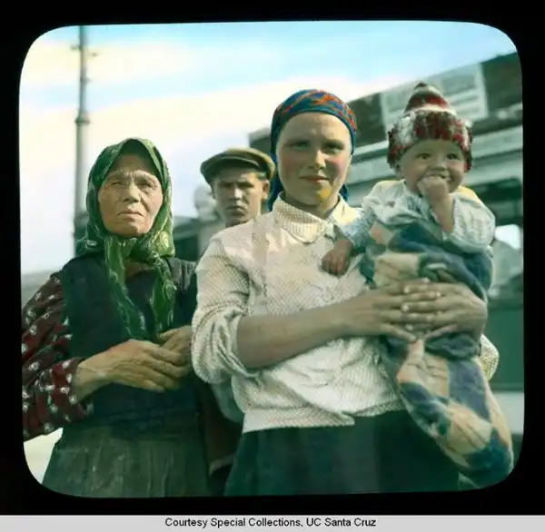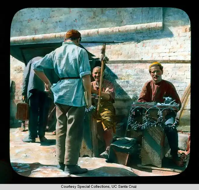 Коллекция цветных слайдов, снятых в Москве в 1931-м году.Эта примечательная подборка типов московских жителей храниться в Калифорнийском университете.