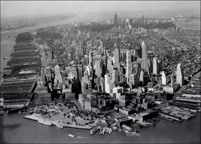 фотографий, на которых изображен Нью-Йорк в прошлом и сейчас.