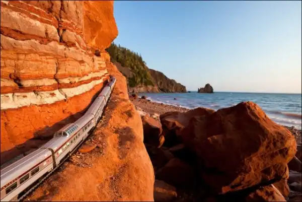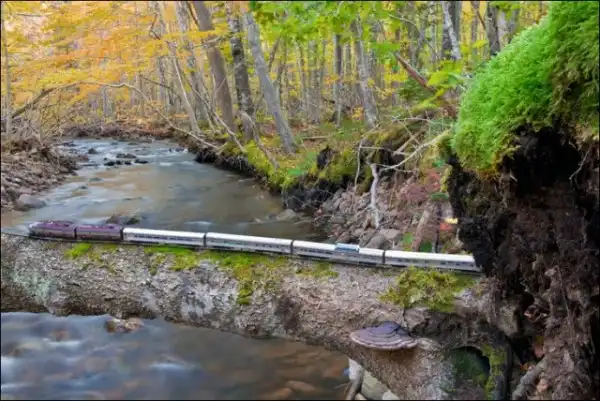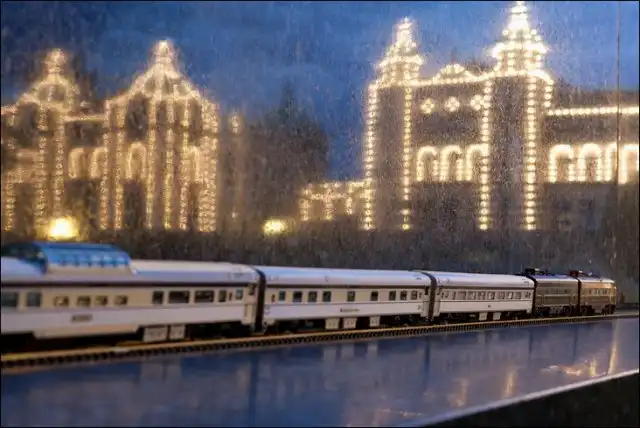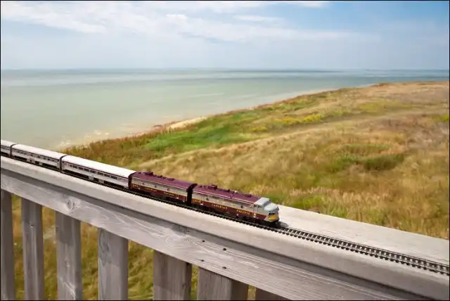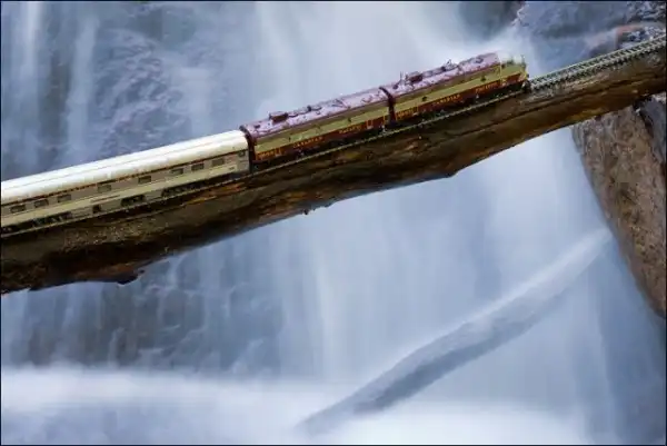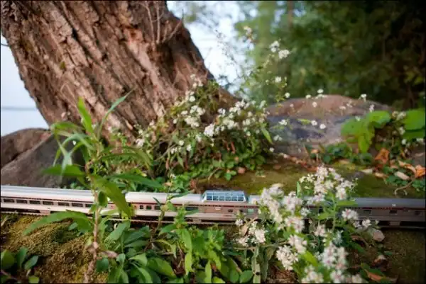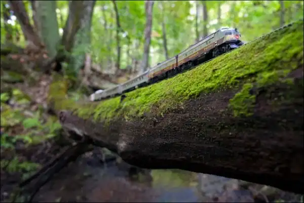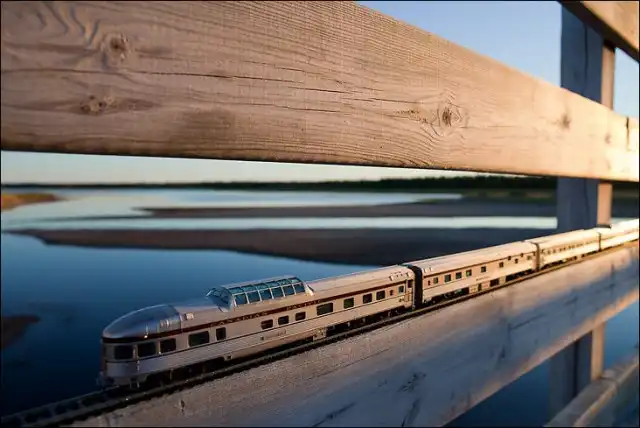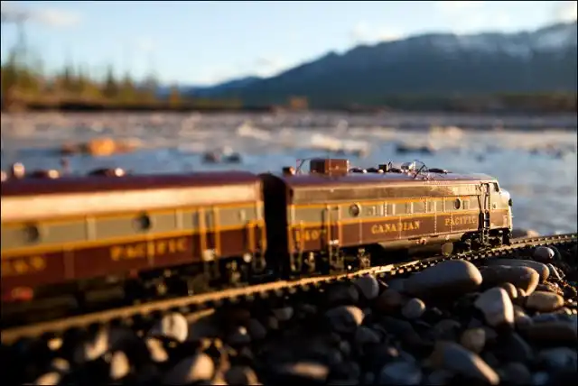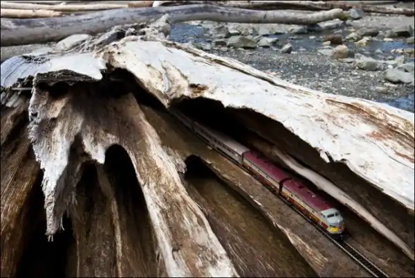 Он взял в путешествие по Канаде игрушечный поезд, который фотографировал в разных местах на протяжении всей поездки.