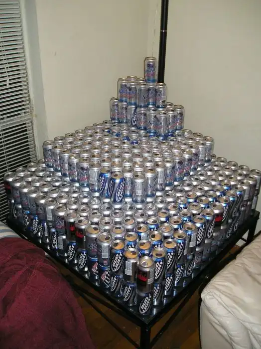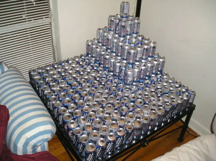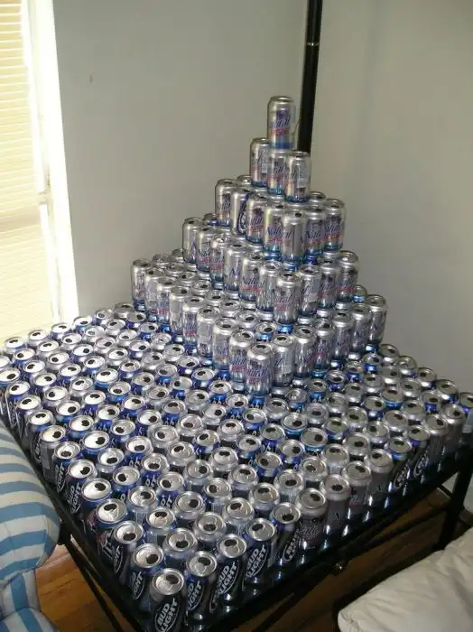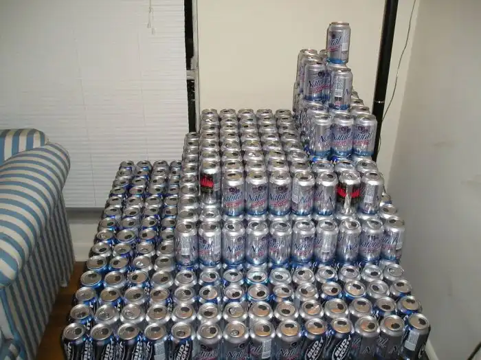 Рабочий стол студента, который любит пить пиво