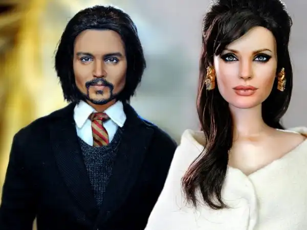 Куклы Джонни Деппа и Анджелины Джоли в образах героев фильма «Турист».