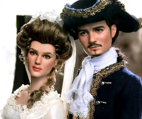Куклы Киры Найтли и Орландо Блума в образах героев саги «Пираты Карибского моря».