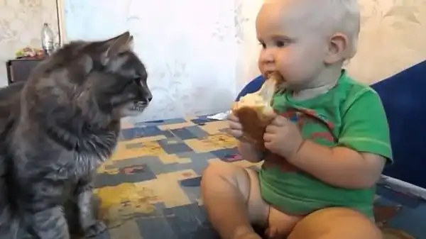 кот ребёнок и булка