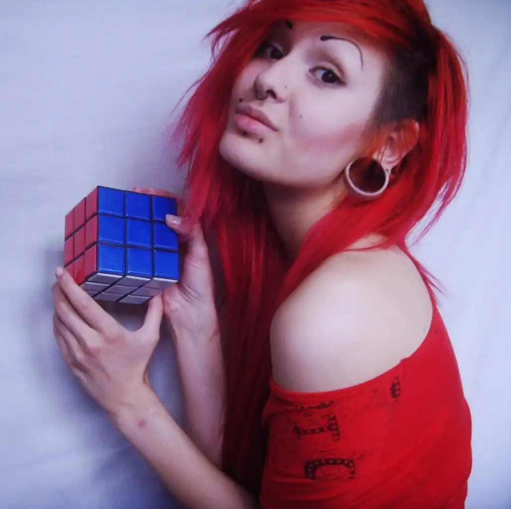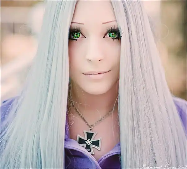 С цветными волосами.
