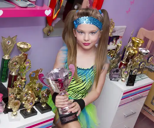 Вместо того, чтобы гулять со своими сверстниками, девочка постоянно занята тренировками, репетициями, укладкой волос, макияжем и соблюдением диеты.