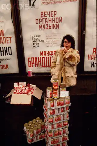 Первый результат эволюции торговли- ларьки, в которых продавалось всё, что приходило в голову хозяину точки: "спирт " Рояль", одежда, шоколадки-сигареты, продукты. Помню ларёк , который продавал лекарства, а список лекарств был написан на картоне.