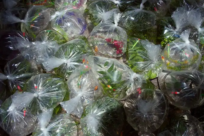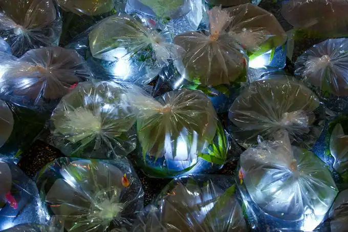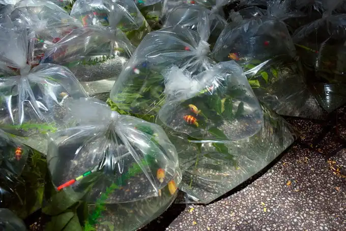Новая инсталляция Luzinterruptus называется "Карманная река" и состоит из 2000 пакетов с водой, в которой плавает рыба. Это еще один призыв беречь окружающую среду, с которым, как обычно, выступает эта группа художников.