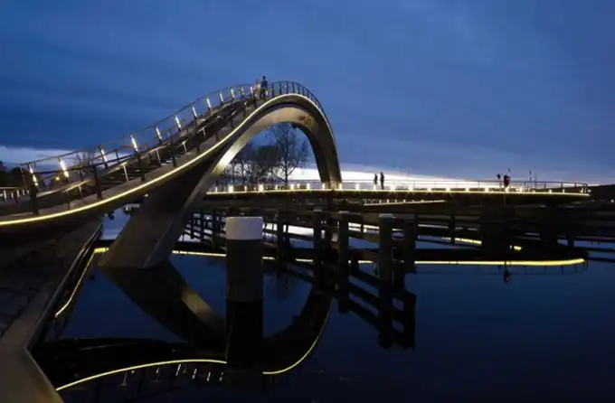 Этот двойной мост соединяет исторический квартал с современной частью города. Melkeweg Bridge - проект, разработанный Next Architects и расположенный в Нидерландах.