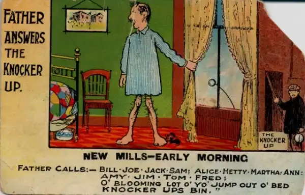 Knocker-up или Knocker-upper – это забытая профессия в Англии и Ирландии, состоявшая в том, чтобы будить людей на работу. Она зародилась во времена промышленной революции и существовала до 20-х годов 20-го века.