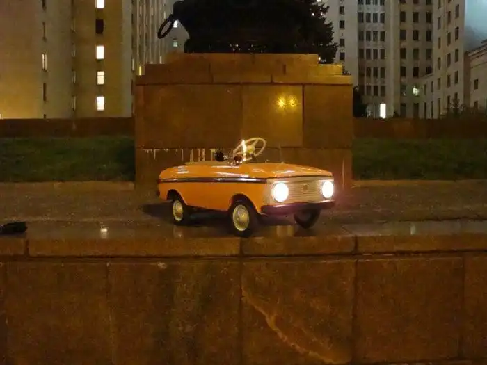 У него даже запах есть. Теперь это можно купить в виде спрея "запах новой машины". А тогда этот запах перешибал устоявшийся запах нафталина и лекарств в бабушкиной комнате, где ты, лёжа на скрипучей раскладушке, ждал разрешения встать и строить из этой самой раскладушки почти настоящий аэроплан. От подарка воздух в квартире уплотнился, как бы по закону Архимеда, придавил тебя, сбил дыхание. Так бывает, когда в квартиру вносят что-то, больше коробки с тортом. И ты так: маааам? пааап? А и будь, что будет и встал и вышел и кааак увидел!!! И впервые реально стало плохо. Не хорошо, а, именно, плохо. Слишком много разных мыслей. Ведь так быть не может! Ведь это не мне! Это ведь унесут, потому что это не мне и так быть не может. Ведь я не просил даже. а они как могли узнать? Ведь такое просить нельзя, об этом вслух мечтать нельзя, потому что ты сам себе запретил. Это первый в жизни шок.