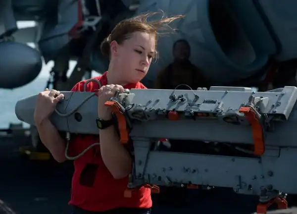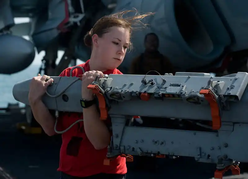 7. Задача авиационного техника по вооружению Саманты Филипс взять образец топлива из бака военного истребителя. 3 января 2012.