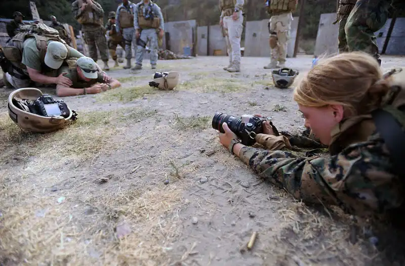 13. Капрал Эрика Ди Сальво готовит фоторепортаж о тренировках пехотинцев. 12 августа 2011.