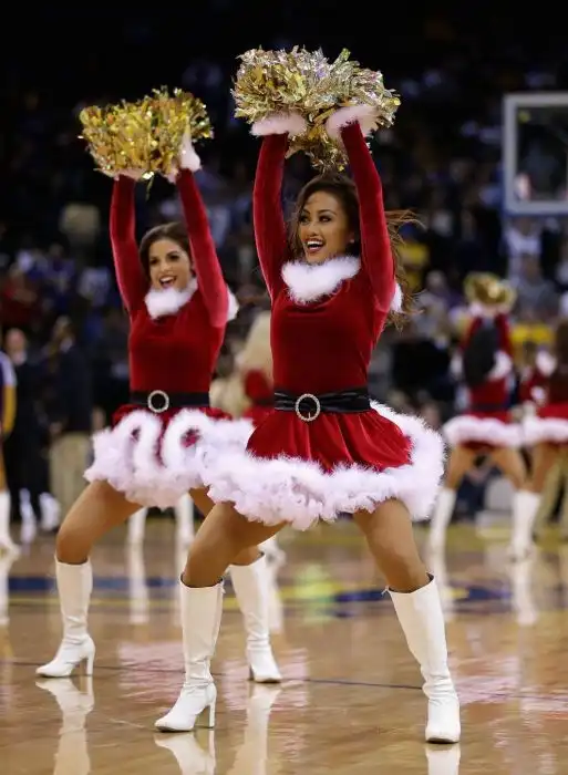 развлекают посетителей спортивных событий в преддверии нового года и Рождества.