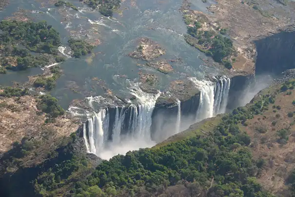 Естественная чаша бассейна водопада Виктория в Зимбабве расположена на высоте 128 метров.