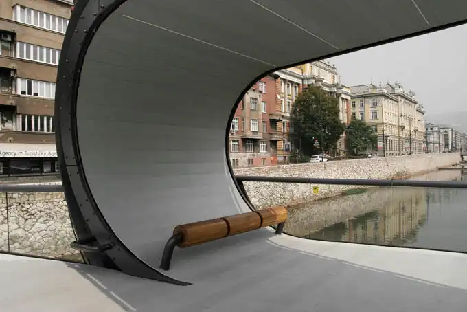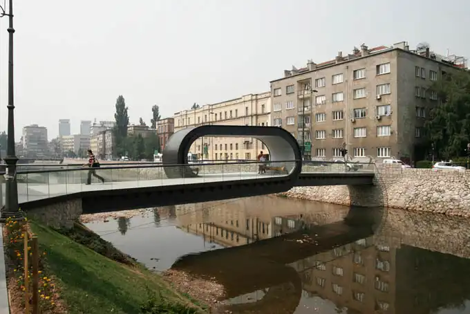 В Сараево (Босния и Герцеговина) архитекторы Adnan Alagić, Bojan Kanlić и Amila Hrustić построили мост "Festina Lente". И действительно, мост похож на ленту, завязанную в узел.