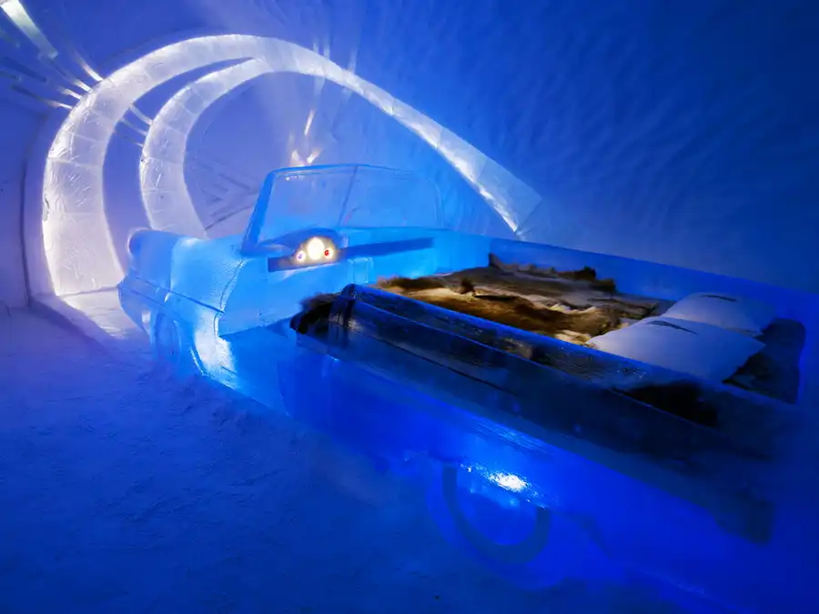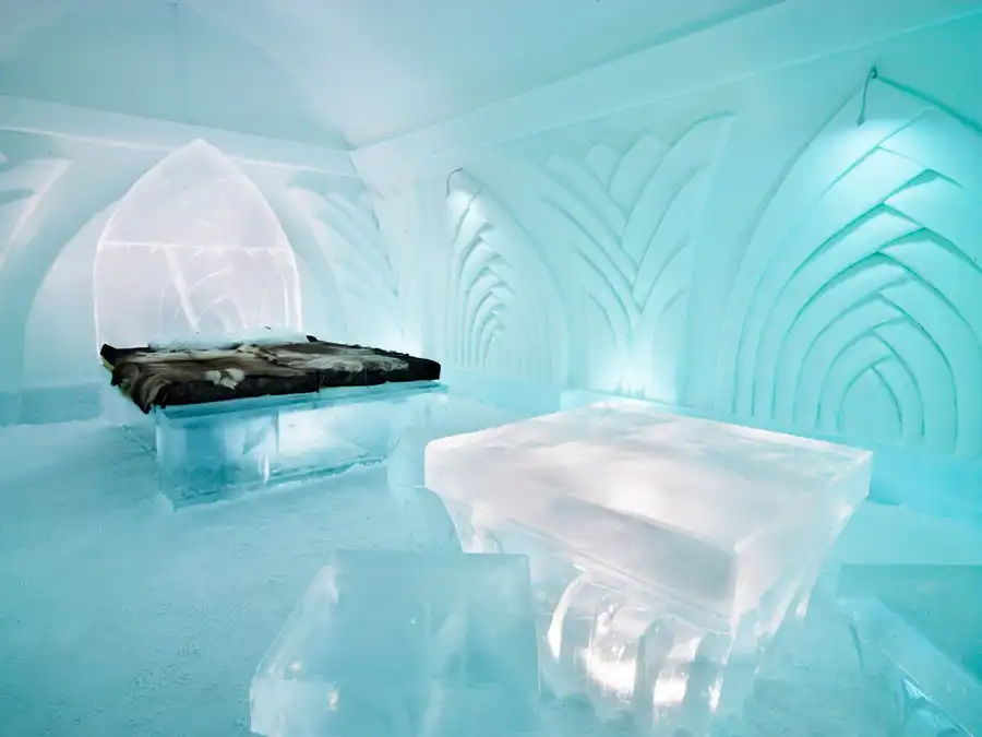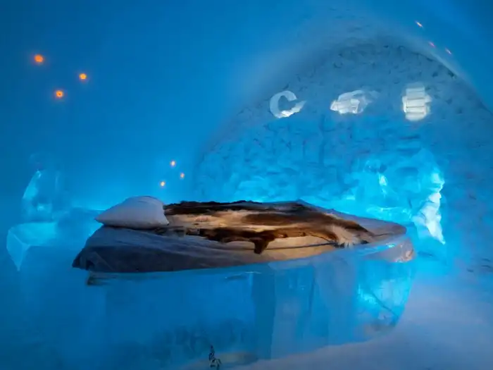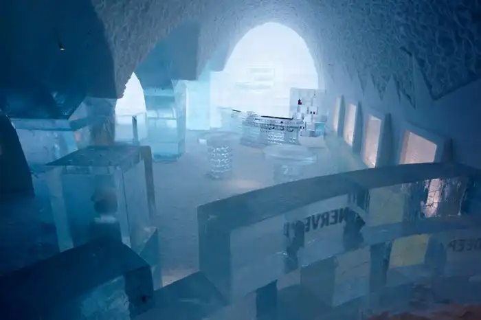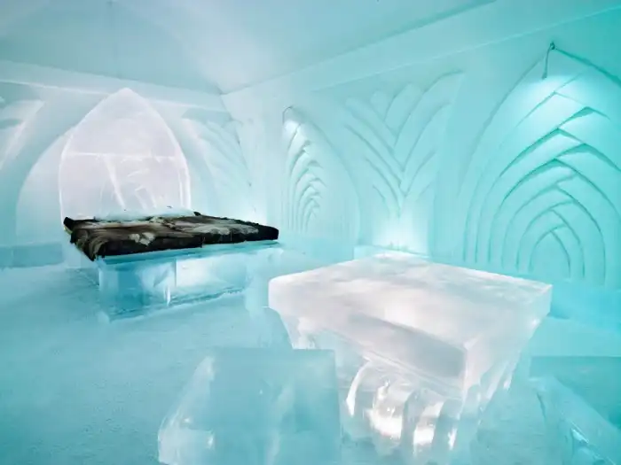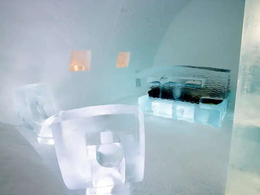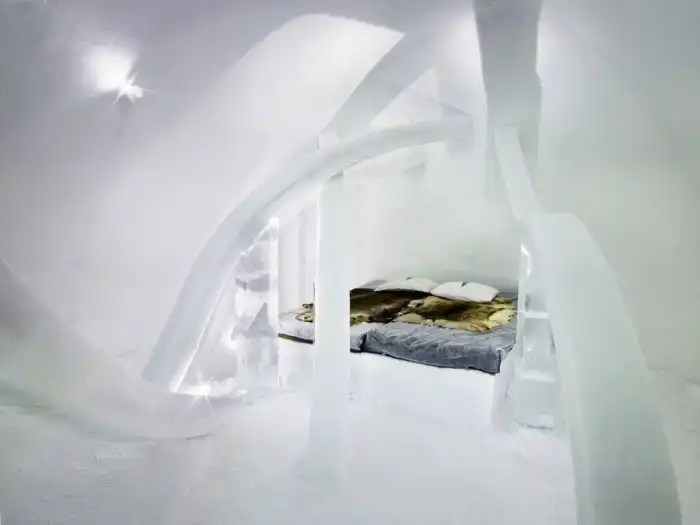 Вот уже который год как только температура опускается ниже нуля в Юккасъярви (Jukkasjarvi, Швеция) начинается строительство гостиницы изо льда и снега. Внутри ледяной гостиница вы найдете ледяной бар, церковь изо льда, а также эксклюзивные апартаменты, интерьер которых разрабатывают дизайнеры со всего мира.