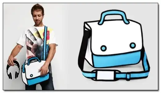 Эти сумки от Jump from paper выглядят как гигантские наклейки, но, как вы можете видеть на 360-градусной анимации с их сайта, это реальные сумки, в которых вы можете хранить свои вещи. Наконец, кто-то сделал сумку для людей, которые хотят выглядеть так, как будто они живут в двух мирах: в нашем мире трех измерений и в мире ярких двумерных иллюстраций.