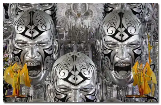 Это лихорадочная галлюцинация – на самом деле фотография гигантской платформы на карнавале в Рио-де-Жанейро. Было бы легко спросить, почему этих девушек скармливают огромным головам с трайбал тату, но мы предпочитаем уважать другие культуры. Снимок был сделан на так называемом Самбадроме (еще фото), который прекрасно сочетает в себе гламур и страшный апокалиптический ужас.