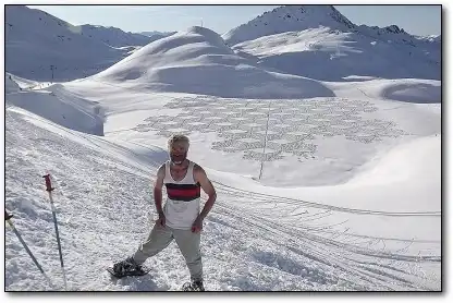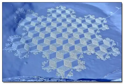 Вы можете спросить, что же такого замечательного это в этом изображении, но потом вы понимаете, что маленькая точка в правом верхнем углу это чувак, который сотворил все это своими ногами. Художник Саймон Бек создает эти гигантские снежные скульптуры, для этого он использует только снегоступы и свои ноги (ну и еще, немного, голову).