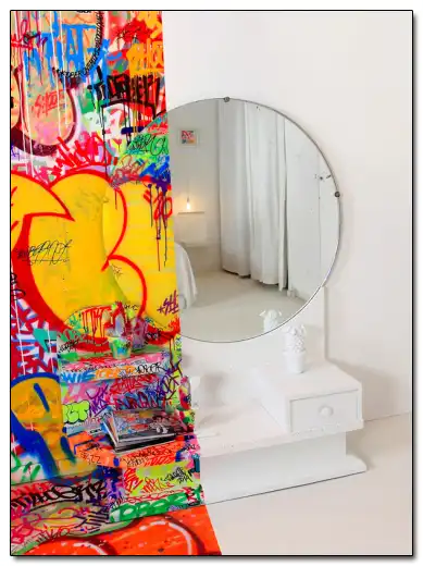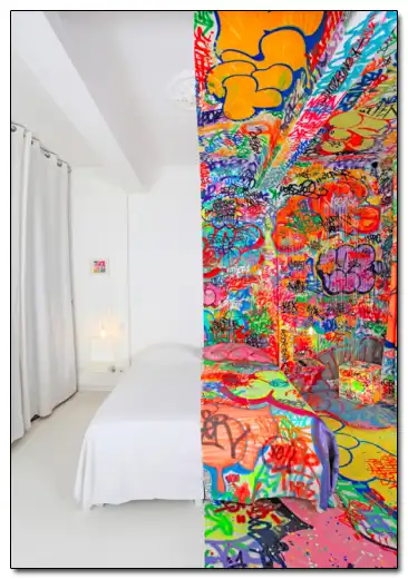 На этой фотографии запечатлена настоящая комната во французском отеле (англ.), который предлагает лучший или худший в мире сон, в зависимости от того, на какой стороне кровати вы спите.